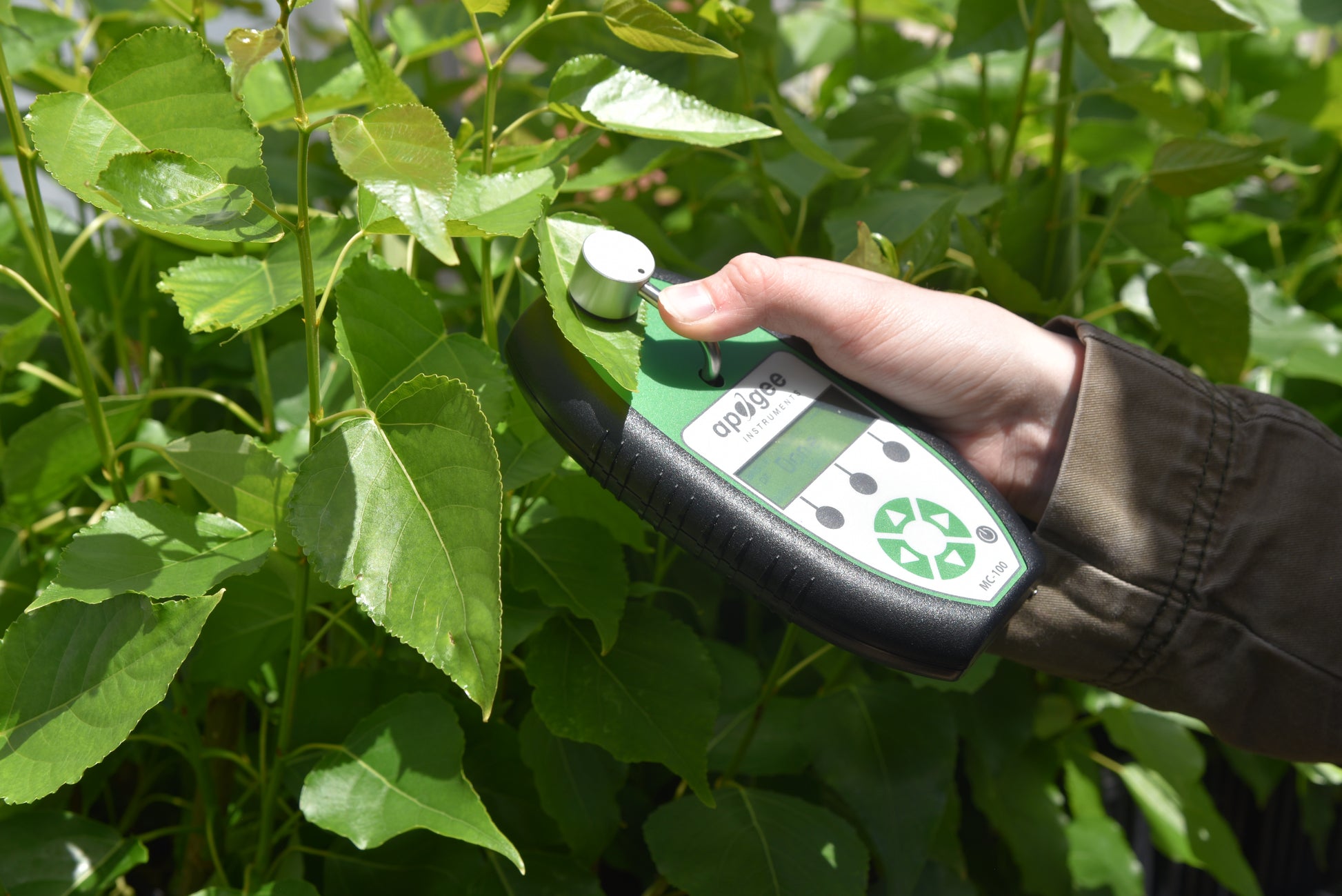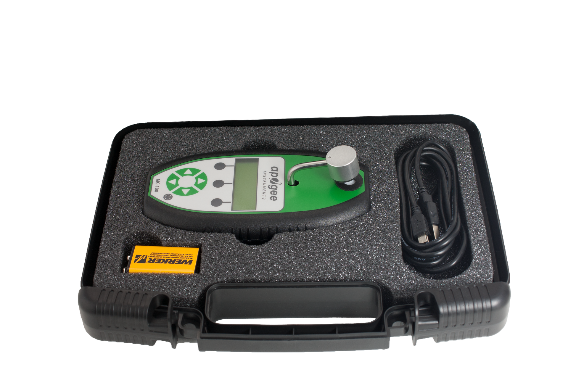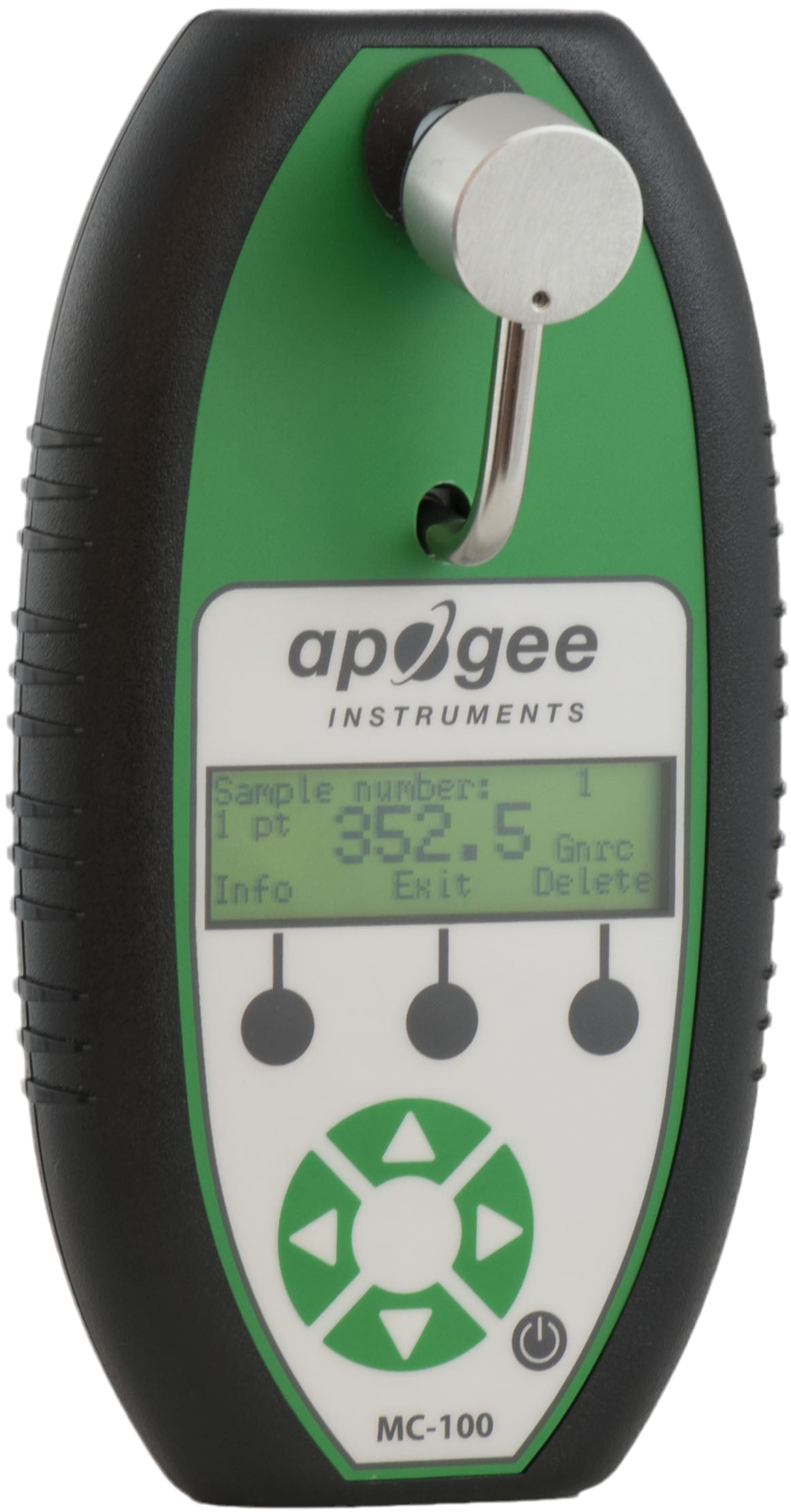 El instrumento MC-100 está calibrado para medir la concentración de clorofila en las hojas en las unidades de μmol de clorofila por metro cuadrado.