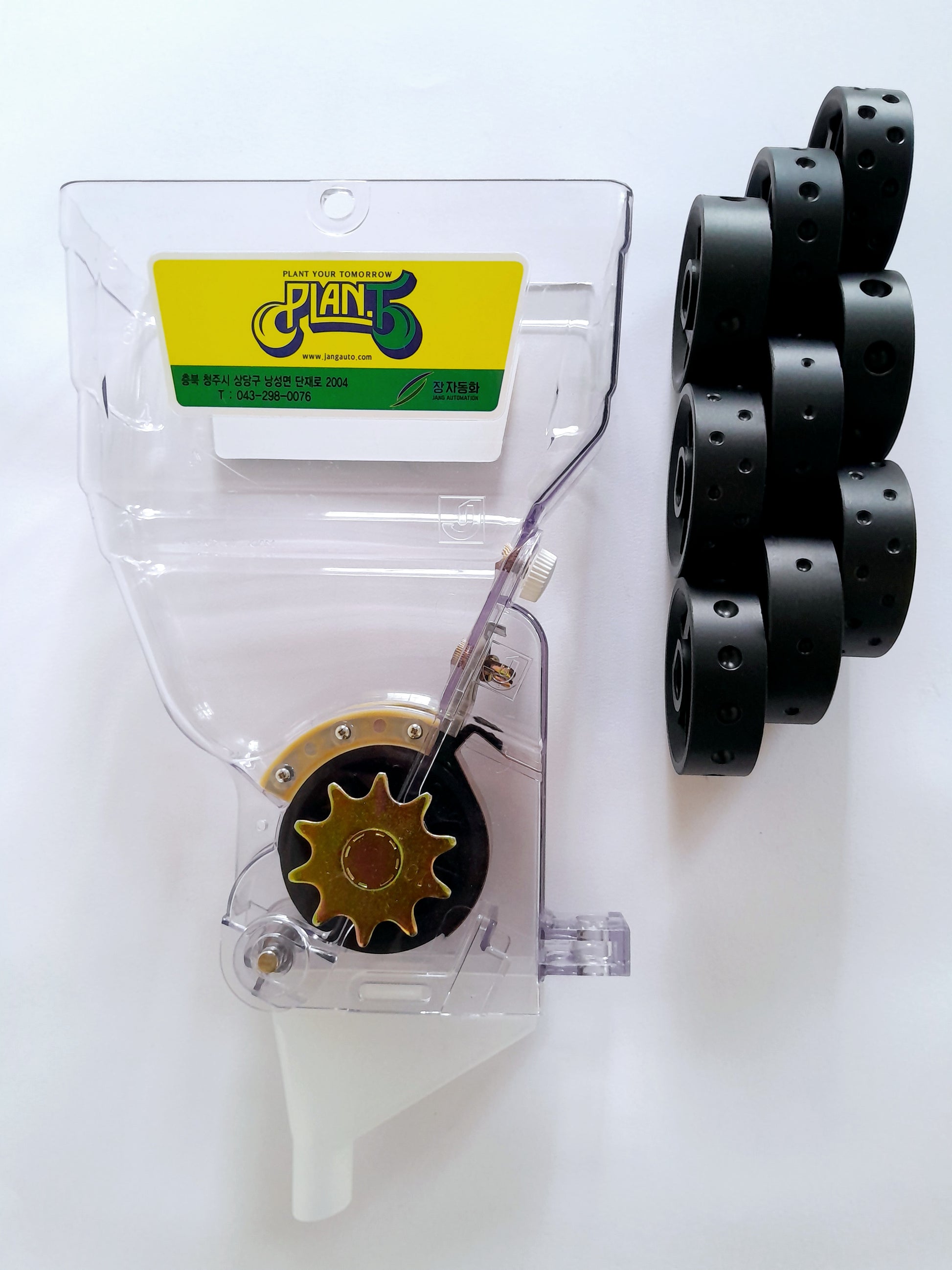 - Rodillo: ajustable de acuerdo al tamaño y forma de la semilla